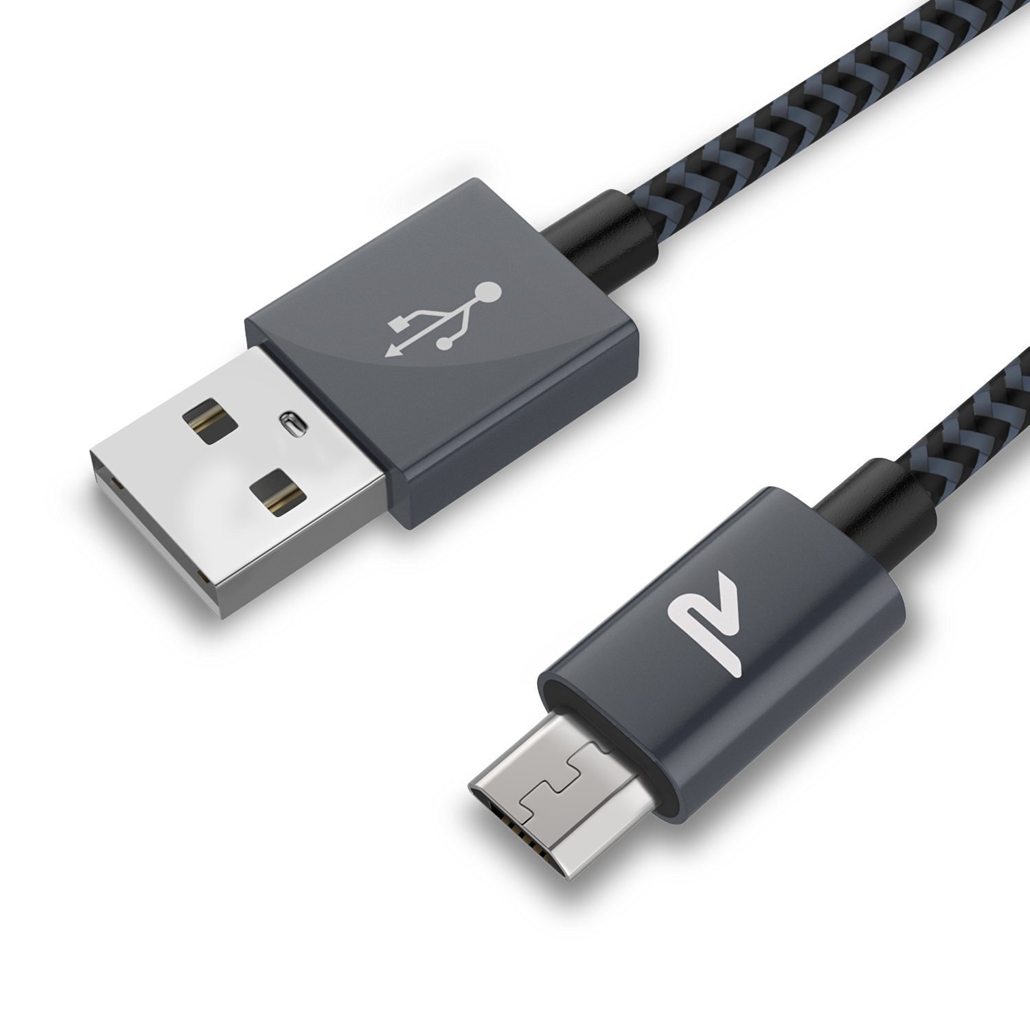 Micro USBケーブル 2A 【2本組-1m】 Rampowの生涯保証 急速充電 高耐久ナイロン Android Micro USB機器対応 スペスグレイ[\849]