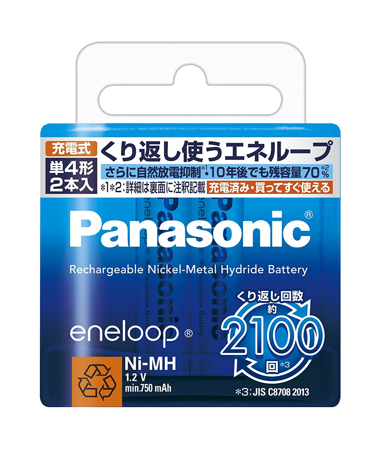 パナソニック エネループ 単4形充電池 2本パック スタンダードモデル(\477)