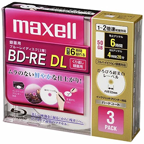 maxell 録画用ブルーレイディスク BD-RE DL 260分 (1~2倍速対応) 「ひろびろ超美白レーベ BE50VFWPA.3J(\916)