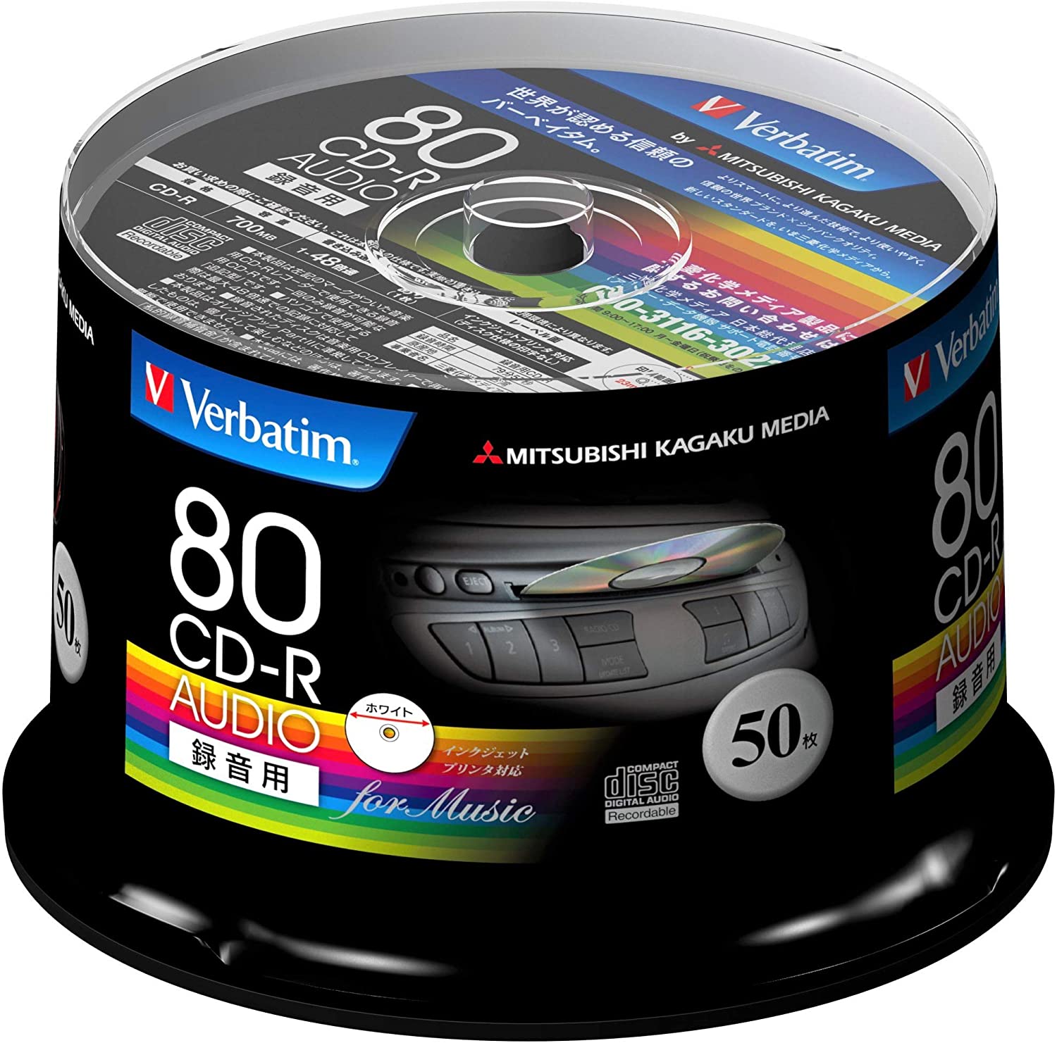 Verbatim バーベイタム 音楽用 CD-R 80分 50枚 ホワイトプリンタブル 48倍速 MUR80FP50SV1 ¥1,073