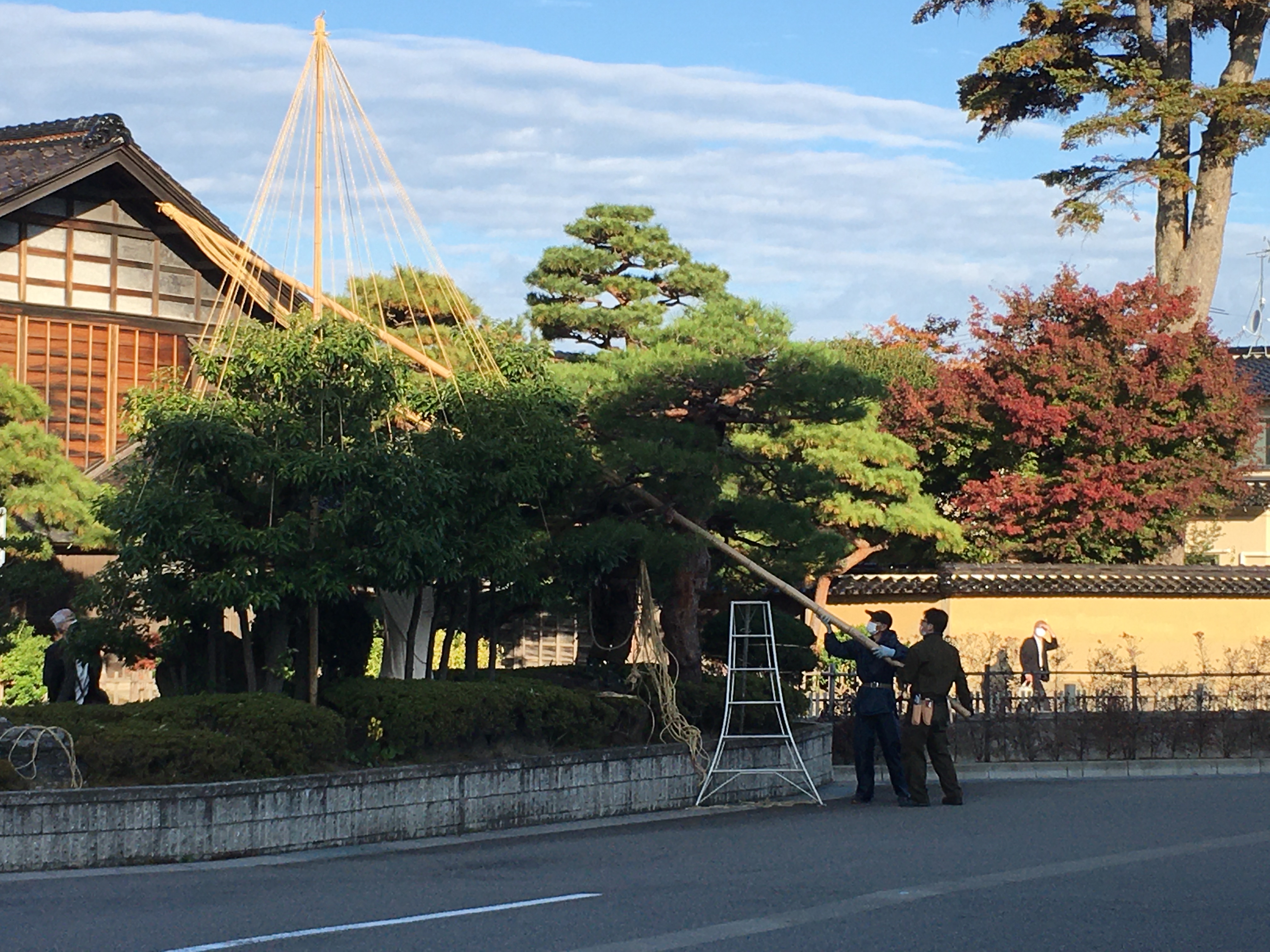 雪吊りの準備